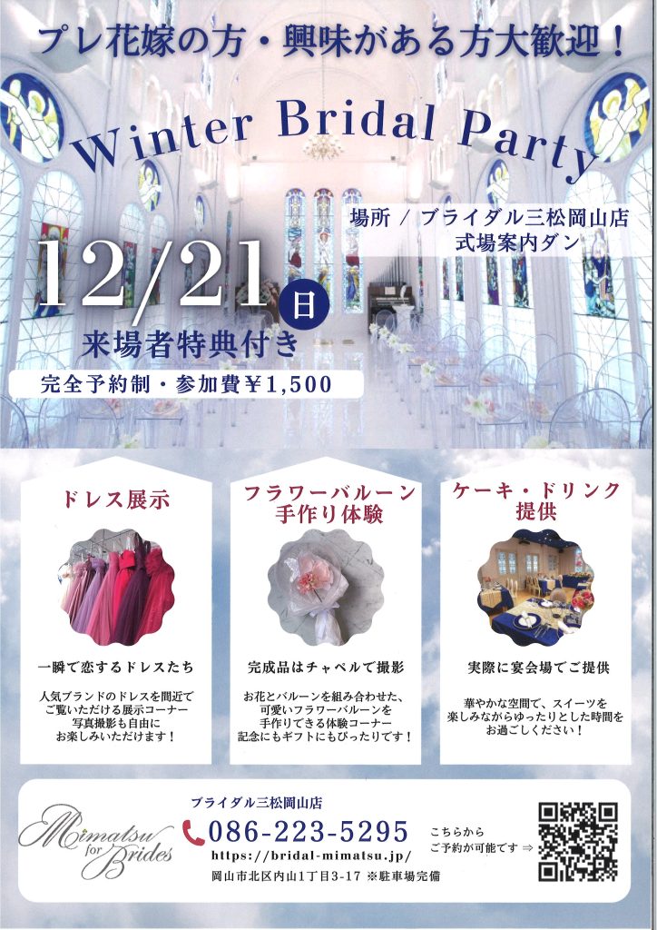 12月21日(日)ウィンターブライダルパーティーを開催します。